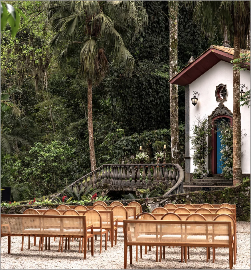 Nosso espaço conta com 5 casas de design assinadas pelo arquiteto barcelones @Pep_Pons, que oferecem conforto e sofisticação para os noivos e seus convidados, uma capelinha barroca datada de 1970, proporcionando um ambiente sagrado e intimista para a cerimônia. Além disso, para realização do grande dia, contamos com 450 metros quadrados de área coberta, garantindo conforto mesmo em condições climáticas adversas, uma cozinha industrial totalmente equipada, banheiros bem estruturados e uma pista de dança insonorizada.